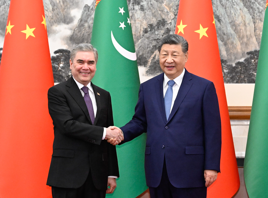 3月18日下午,国家主席习近平在北京钓鱼台国宾馆会见来华进行友好访问的土库曼斯坦民族领袖、人民委员会主席别尔德穆哈梅多夫。新华社记者 申宏 摄