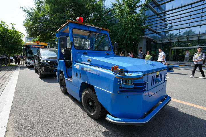 这是在北京驭势科技拍摄的一款用于机场物流作业的无人驾驶牵引车(2025年6月16日摄)。新华社记者 鞠焕宗 摄