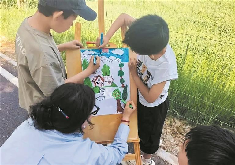 此外,这里还开设了特色课程。在非遗小课堂上,孩子们学剪窗花、写书法,感受传统文化魅力;护苗伴成长里,聚焦法律法规、防溺水安全等,用通俗易懂的语言、真实案例剖析及互动问答形式,确保暑期安全不打烊;实践课程更是突出乡土情怀和劳动教育,让孩子们走进田间地头,亲近大自然。
