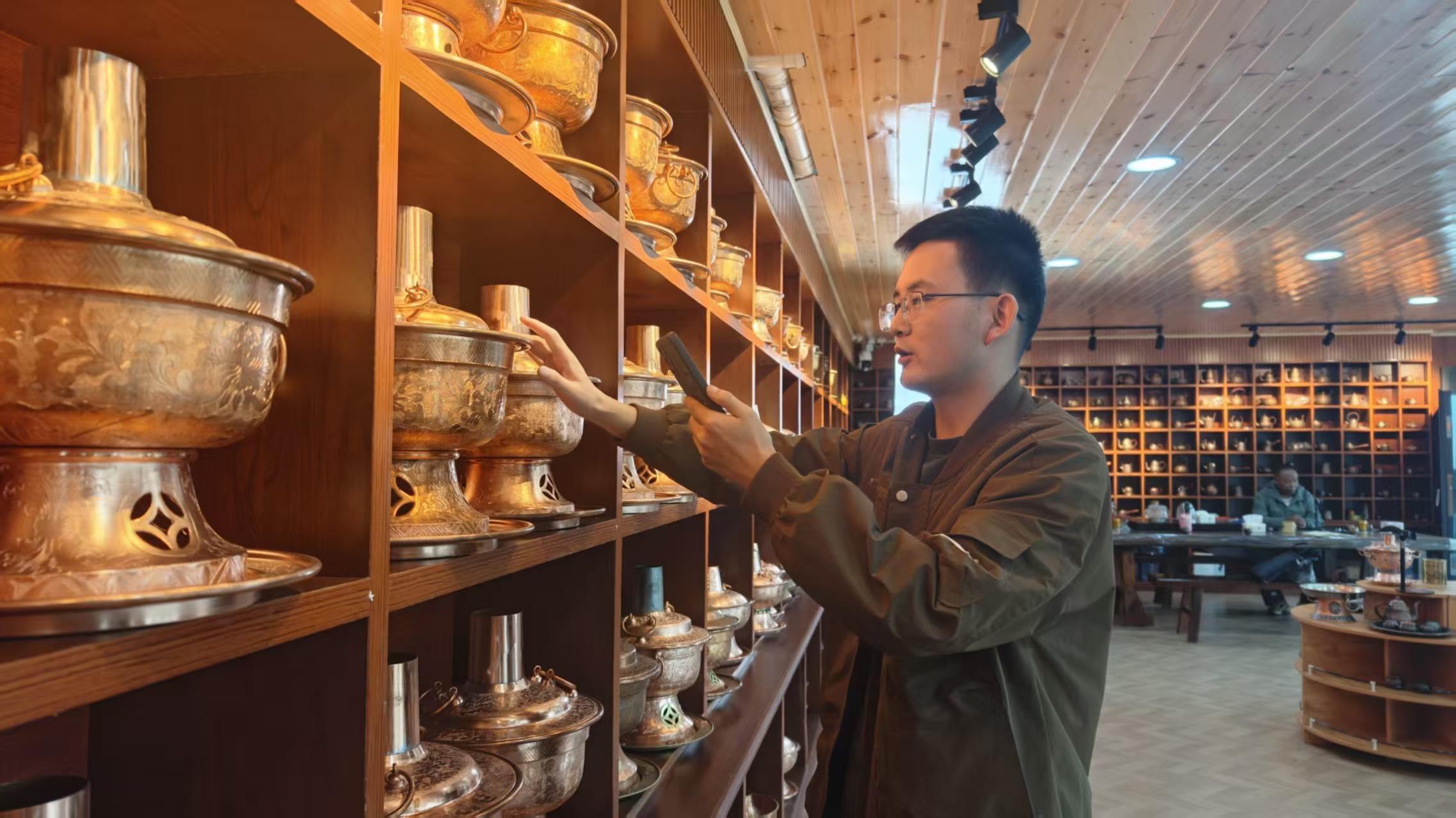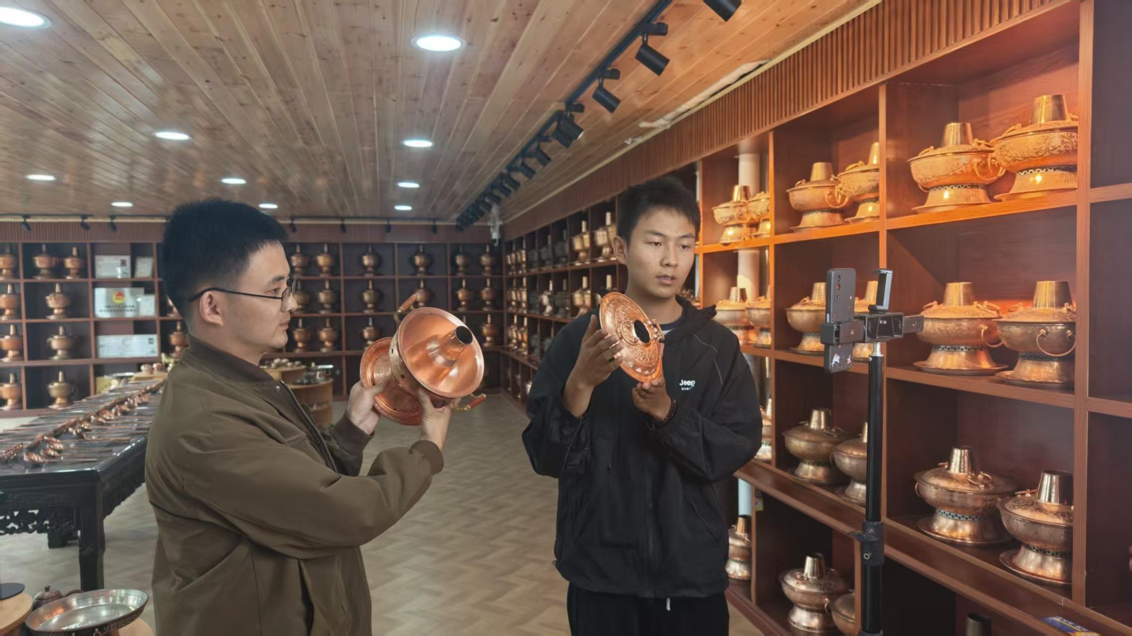 年轻人带来的不只是流量,还有对产业的新思考。青海湟匠人传统文化有限公司负责人马世杰说,团队外出学习后引入机械化生产,让铜锅的铆钉、底座等简单部件由机器完成,主体雕刻仍保留手工。如今公司每天营业额稳定在3000至4000元,遇上节假日能破万,不少省内顾客看完直播,直接开车到厂里,点名要直播间里的那只暖锅。