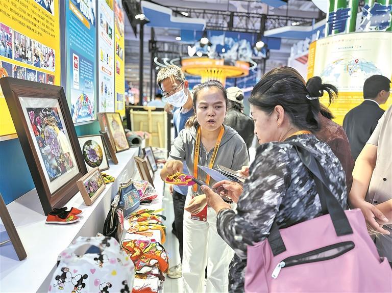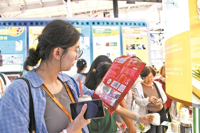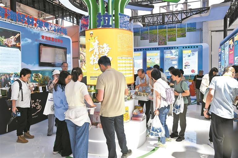 9月11日,2025年中国国际服务贸易交易会现场,来自青海的14家企业集中展示青海绿色有机农畜加工产品和民族手工艺品等。青海的服务贸易企业和优质产品吸引众多省外参展商及嘉宾的关注,双方真诚畅聊,以服贸会为契机,开启交流与合作的全新篇章。青海日报记者 王 晶 刘娟娟 何娴珺 摄