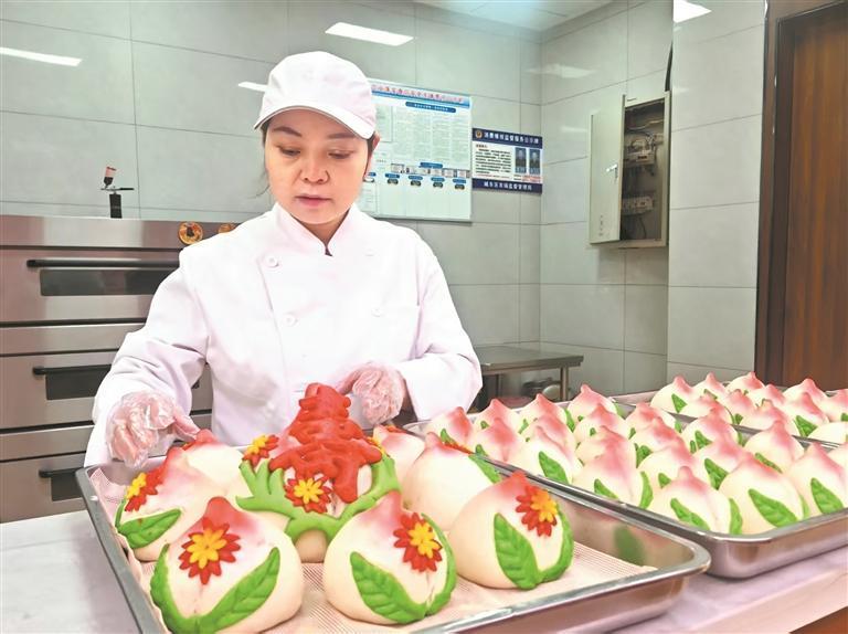 冶明秀就是变化的见证者。“我原来是全职主妇,照顾两个孩子。2024年加入工坊后,现在月收入3000多元。”她一边打包寿桃,一边笑着说,“既能顾家,又能挣钱,挺幸福的。”