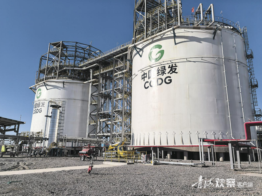 在海西蒙古族藏族自治州格尔木市,由中国绿发投资集团有限公司和中国科学院理化技术研究所联合研发的青海省6万千瓦/60万千瓦时液态空气储能示范项目无惧“沙戈荒”环境的极端淬炼,若干巨型储罐“拔地而起”。